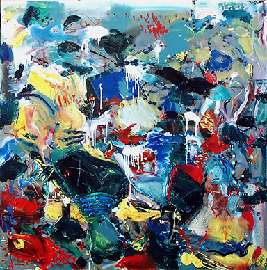 Damp Forest Oils, Acrylics, Wood 4 x 4 feet 2000