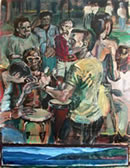 I work predominantly in an oil based medium on multi-sized wood surfaces. My paintings embody power, emotion, and directness of expression. Focusing primarily on the figure and the landscape, my creativity involves expressive body movement, similar to a ritualistic dance. To me the ultimate element in my work is truth; truth only exists in the presence. My passionate gesture approach brings me back into the presence, and is therefore my way of rediscovering Who I Am.